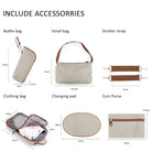 Complete 7-in-1 Set: Includes one large diaper bag, insulated bottle bag, clothing bag, small travel bag, coin purse, changing pad, and stroller straps.