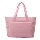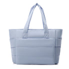 The bag includes padded shoulder straps for comfortable wear and a luggage sleeve on the back for convenient stacking on suitcases — ideal for travel, day trips, or visits. The structured design helps the bag stand upright, while the foldable material makes it easy to store when not in use.