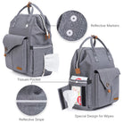 Crafted from durable, water-resistant fabric, this backpack includes insulated bottle pockets, an anti-theft back pocket, and a side tissue dispenser for quick access. The special wipe pocket design ensures convenience during diaper changes, while the premium alloy zippers and leather-like accents add a touch of elegance.