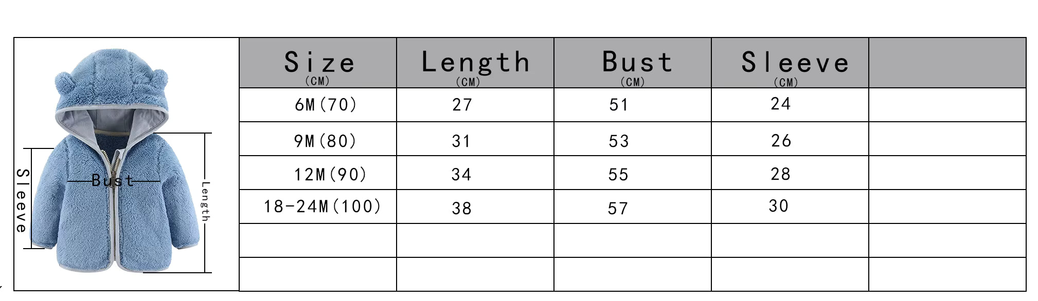 Keep your little one warm and cozy during the colder months with this ultra-soft fleece hooded baby jacket. Designed with both comfort and cuteness in mind, this zip-up coat features a plush teddy-style exterior and an adorable hood complete with bear ears. The inner lining is gentle on your baby’s skin, while the full-length zipper ensures easy dressing and removal.