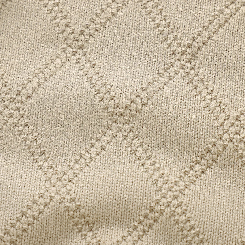 Keep your little one warm and cozy with our knitted baby romper, featuring a timeless diamond pattern in a soft, neutral beige tone. Crafted from a gentle cotton blend, this long sleeve baby jumpsuit is perfect for cooler weather and ideal for everyday wear or special occasions.