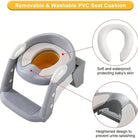Make potty training easier and safer with this versatile 2-in-1 toddler potty training seat. Designed for children aged 1 to 7 years, this toilet trainer features a soft, removable seat cushion and sturdy non-slip steps to support your child during toilet use. It functions as both a standalone potty and a ladder toilet seat, adapting to different stages of training.