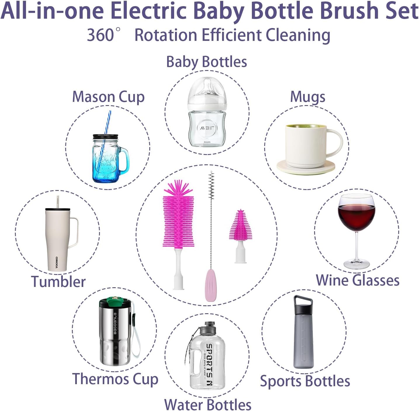 Rechargeable Electric Baby Bottle Brush with UV Sterilizer