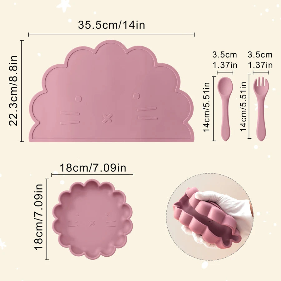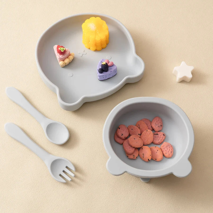Silicone Baby Feeding Set – 4-Piece Suction Plate, Bowl, Spoon & Fork | BPA-Free | Bear Design