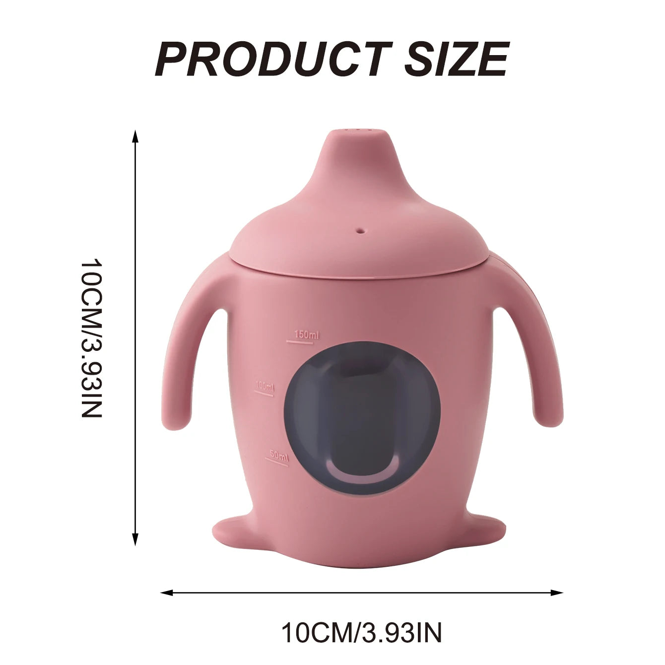 Featuring ergonomic double side handles, a non-slip grip, and a leak-resistant lid with three small flow holes, this baby drinking cup encourages independent drinking while minimizing mess. The semi-transparent window with clear volume markings (50ml, 100ml, 150ml) helps parents track intake with ease.
