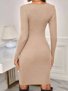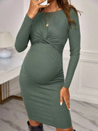 This ribbed maternity bodycon dress combines elegance, comfort, and stretch to support your growing belly with style. Crafted from a soft and breathable knit fabric, this long sleeve dress features a flattering twisted front detail that highlights your silhouette while providing gentle stretch and support throughout pregnancy.