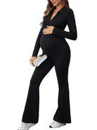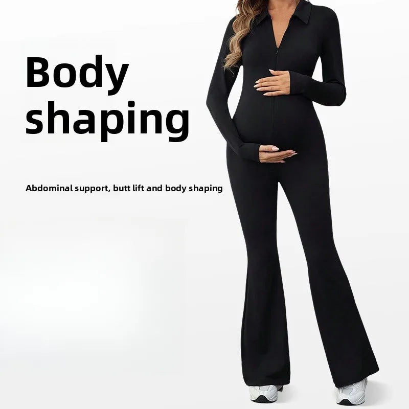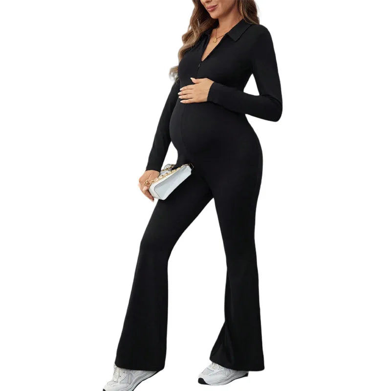 Stay stylish and supported throughout pregnancy and beyond with this maternity slim fit flared jumpsuit. Crafted from a soft, moderately stretchy fabric, this one-piece is designed to offer both comfort and contour, ideal for modern moms.