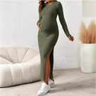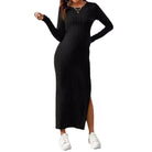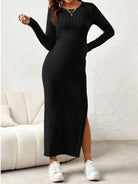 The long sleeves and full-length cut add elegance, while the side slit brings a modern, flattering edge. Whether you're heading to a casual lunch, a baby shower, or just want to elevate your everyday look, this dress is a versatile must-have.