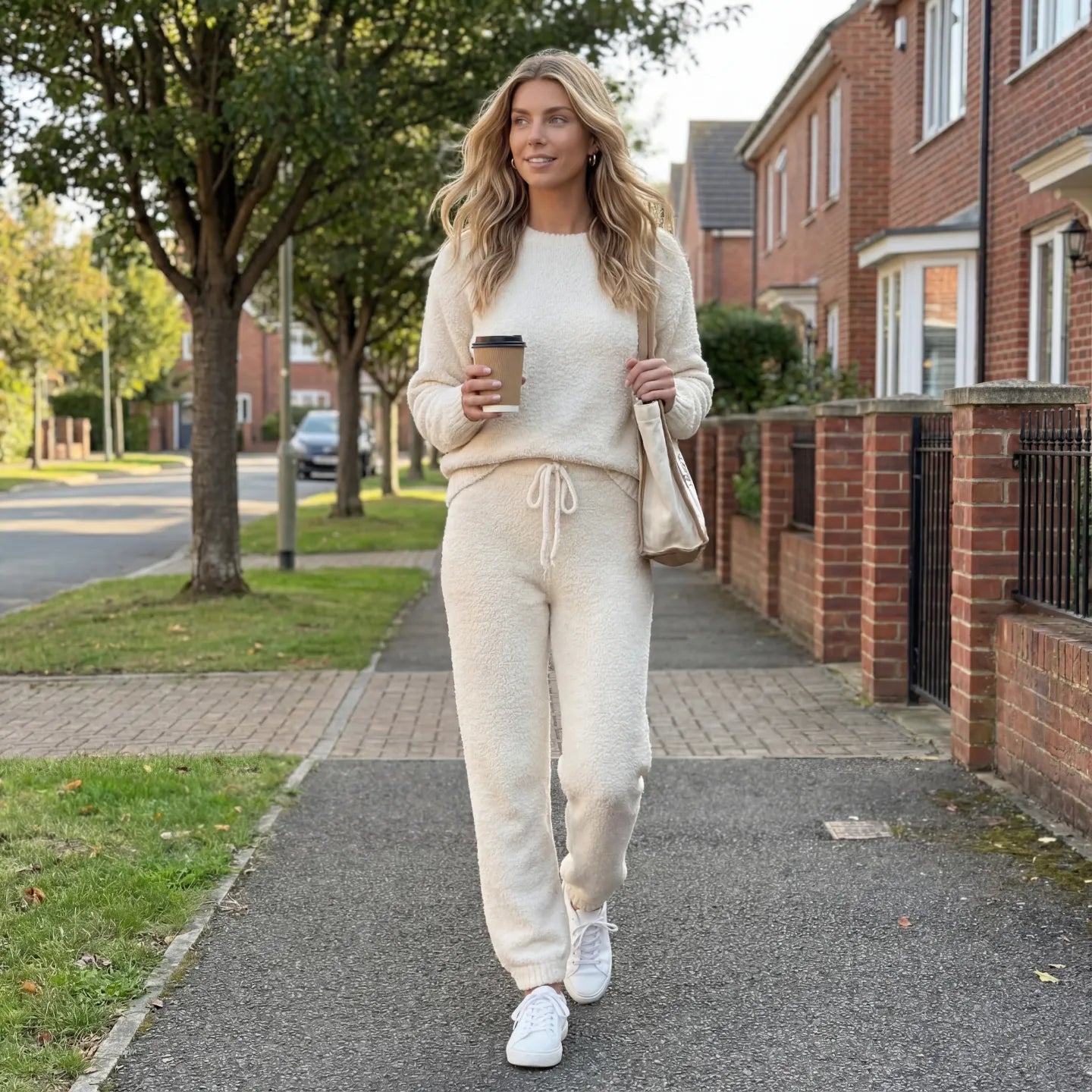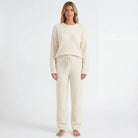 With a relaxed fit, adjustable drawstring waistband, and ribbed cuffs, it delivers a perfect balance between comfort and style. Available in timeless neutral tones and seasonal pastels, it’s ideal for lounging, sleeping, or working from home.
