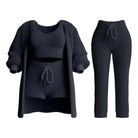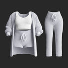 Upgrade your loungewear with this cozy and stylish 4-piece women's pajama set. Designed for maximum comfort and versatility, this set includes a long cardigan, a white cropped top, a pair of high-waisted shorts with a drawstring, and full-length lounge pants. Perfect for relaxing at home, sleepovers, or lazy weekends, this set is a must-have for any wardrobe.