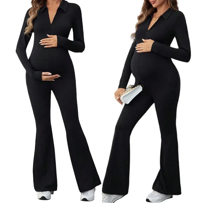 Stay stylish and supported throughout pregnancy and beyond with this maternity slim fit flared jumpsuit. Crafted from a soft, moderately stretchy fabric, this one-piece is designed to offer both comfort and contour, ideal for modern moms.